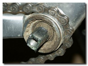 Далее выточит переходную втулку для установки шатуна, прорезав в ней паз под крепежный клин и напрессует ее на выступающий конец вала. Отремонтированный таким образом кареточный механизм нередко работает до «списания» велосипеда, но слишком много приходится протачивать, срезая весь цементированный слой вала, и лыска паза под клин остается очень маленькой. Шатун с этой стороны от больших нагрузок может расшататься, и тогда придется думать, как ремонтировать и это место.