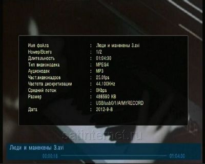Для более полного представления о информационных возможностях ресивера HotCake HD предлагаем скрин при нажатии кнопки INFO на пульте.