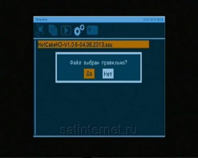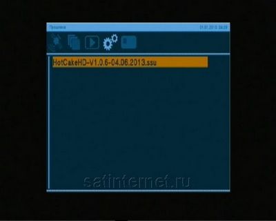 Первым делом ресивер следует прошить. Для этого надо скачать архив с прошивкой отсюда. и распаковать его на флэшку. Затем флэшку надо вставить в USB порт ресивера, и после того, как он ее увидит, о чем появится сообщение на экране, нажать на пульте конпку МЕНЮ и выбрать ПРОШИВКА