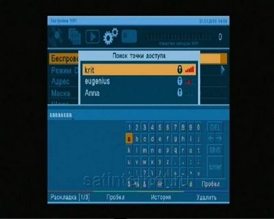 Откроется окно ввода ключа доступа к сети. При помощи виртуальной клавиатуры следует ввести пароль к вашей сети.
