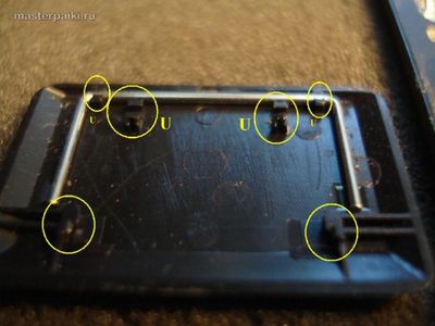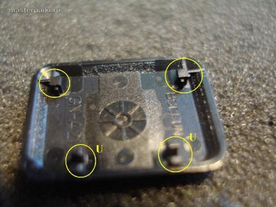 Вот так выглядит клавиша снизу. Отмечены U-защелки .
