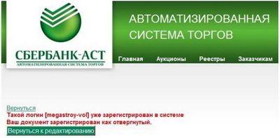 Такой логин уже зарегистрирован в системе. Ваш документ зарегистрирован как отвергнутый.