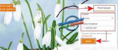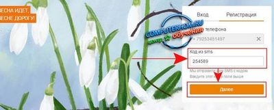 На указанный вами номер телефона придет смс с кодом. Вводите код в соответствующее поле (рис. 3) и нажимаете кнопку Далее.