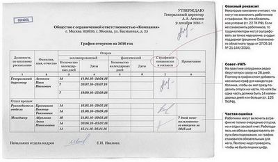 График отпусков обязателен как для сотрудников, так и для работодателей (ч. 2 ст. 123 ТК РФ). Поэтому к его составлению нужно подходить со всей внимательностью. Тем более, что трудовая инспекция при проверках всегда изучает документ и дату его подписания.