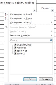 - Можно отфильтровать по столбикам Марка , число жил , сечение и получить список всех кабелей определённой марки.