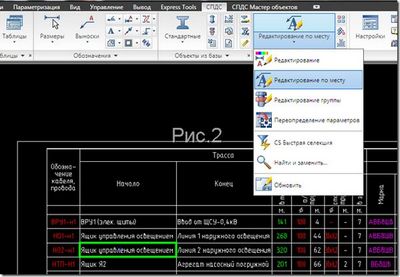 Вторая попытка – использование для решения данной задачи СПДС GraphiCS. Используя таблицы СПДС GraphiCS быстро и удобно реализуется сортировка по любому столбцу таблицы, также удобно учитывать потоки кабелей на рабочем листе. С таблицей можно работать как в отдельном окне (рис.1), так и редактировать по месту (рис.2).