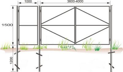Схема сваренных металлических ворот с размерами.