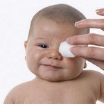 - Затем стерильным ватным тампоном убирается гной и вязкие выделения из глаз малыша.